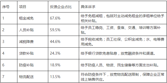 政策建議:租金減免是最多企業(yè)反饋的政策訴求