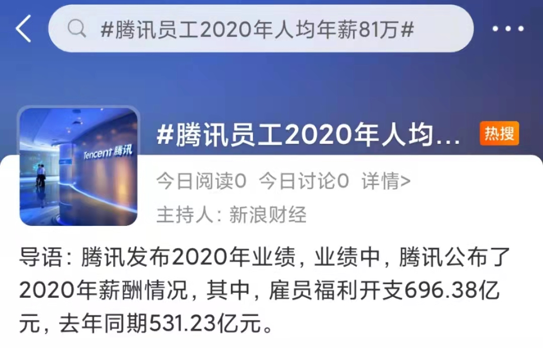 去年,“騰訊員工2020年人均年薪81萬”登上熱搜。