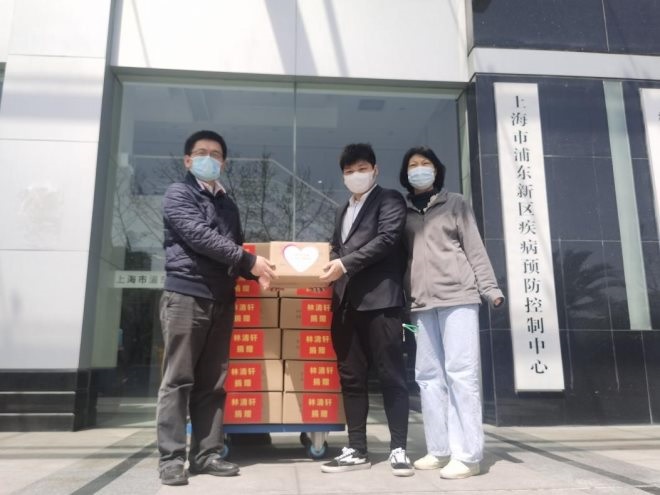 林清軒向浦東新區(qū)疾病預(yù)防控制中心捐贈(zèng)山茶花護(hù)手霜