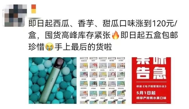 3月11日,國(guó)家煙草專賣(mài)局發(fā)布《電子煙管理辦法》公告,5月1日起,不應(yīng)使產(chǎn)品特征風(fēng)味呈現(xiàn)除煙草外的其他風(fēng)味。此后,電子煙果味煙彈的價(jià)格水漲船高。