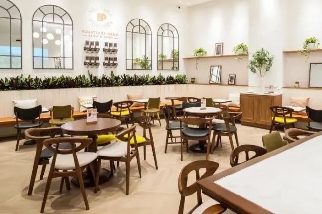 店內(nèi)延續(xù)品牌綠植墻、輕歐法式座椅的花園式設(shè)計,整體氛圍輕松舒適。