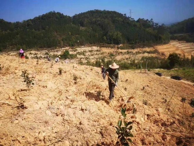 3月19日,在福建省永安市西洋鎮(zhèn)的林清軒中國紅山茶公益林中種植苗木
