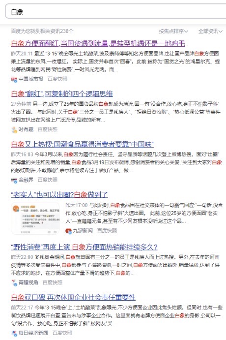 今年央視“315”晚會(huì)過后,河南白象方便面意外走紅,霸氣回應(yīng)和插旗菜業(yè)無合作、用工等行為被網(wǎng)友怒贊,并拿到了“野性消費(fèi)”入場(chǎng)券,其產(chǎn)品在電商平臺(tái)上的銷量暴漲。