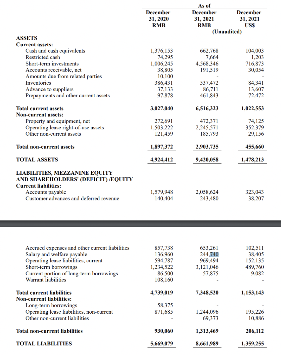 叮咚買菜2021Q4資產(chǎn)負債表