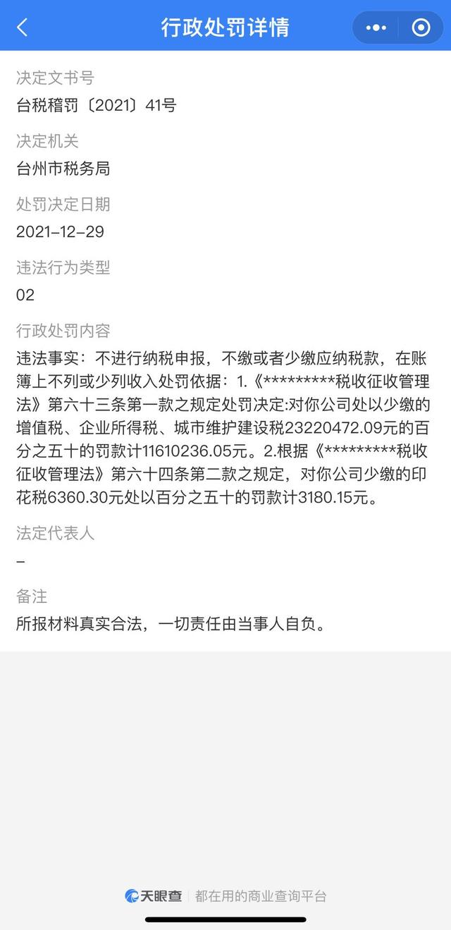 具體事由為,該公司不進行納稅申報,不繳或者少繳應(yīng)納稅款,在賬簿上不列或少列收入,稅務(wù)局對該公司處以少繳的增值稅、企業(yè)所得稅、城市維護建設(shè)稅2322萬余元的50%罰款計1161萬余元,對該公司少繳的印花稅6360.30元處以50%罰款計3180.15元。