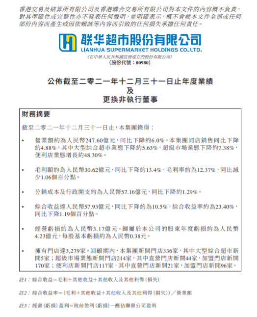 聯(lián)商快訊:3月29日,聯(lián)華超市發(fā)布2021年業(yè)績報告。