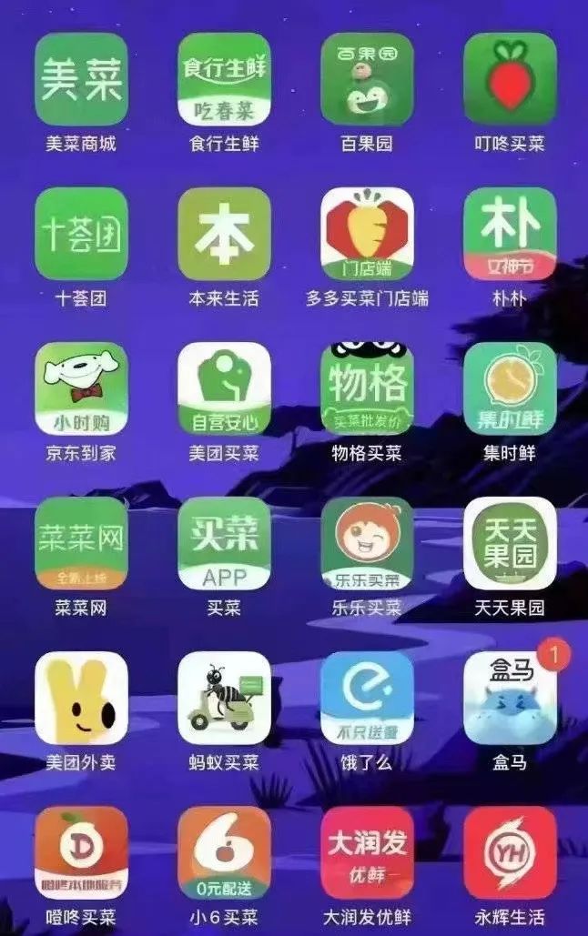 部分可以購買生鮮蔬果的互聯(lián)網(wǎng)產(chǎn)品