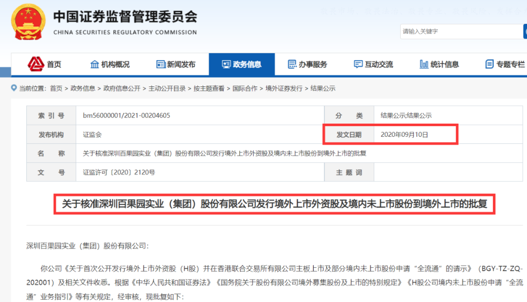 2020年4月,百果園完成股份制改造,兩個(gè)月后向中國證監(jiān)會(huì)國際部遞交《境外首次公開發(fā)行股份(包括普通股、優(yōu)先股等各類股票及股票的派生形式)審批》,擬港交所主板掛牌上市。證監(jiān)會(huì)相關(guān)資料顯示,2020年9月,百果園境外上市申請(qǐng)就已經(jīng)被核準(zhǔn),時(shí)效期為一年。