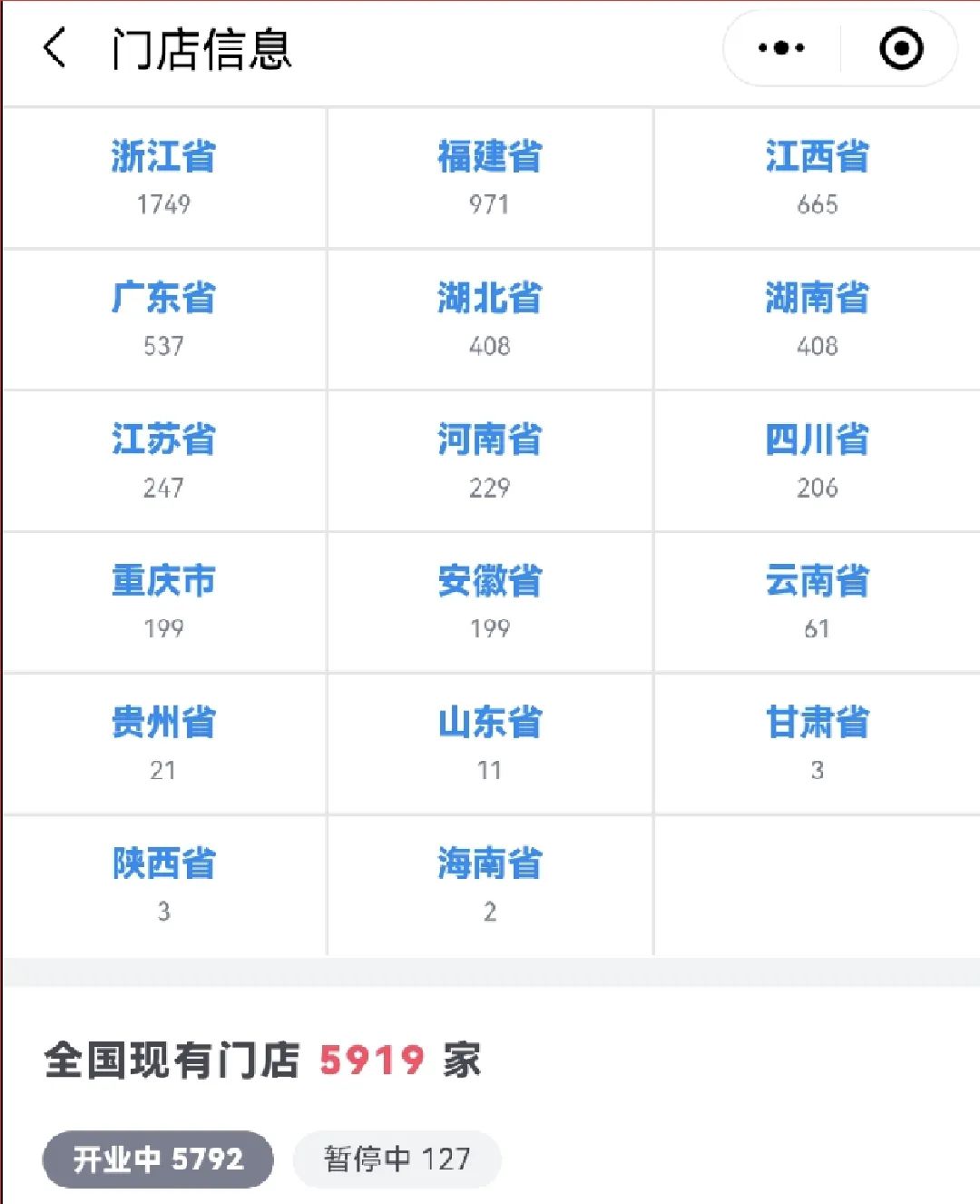 古茗官網(wǎng)顯示,在全國(guó)擁有6000多家店鋪,這是一個(gè)龐大的數(shù)字——算在行業(yè)靠前的位置(蜜雪20000家店,書(shū)亦燒仙草7000多家店)。一開(kāi)始,古茗的加盟路線是“農(nóng)村包圍城市”路線,先是以城鎮(zhèn)為核心,逐漸發(fā)展到臺(tái)州市區(qū),然后輻射到浙江各地的鄉(xiāng)鎮(zhèn)、城區(qū)。緊接著以浙江為核心,拓展到周邊更多的三四線城市。