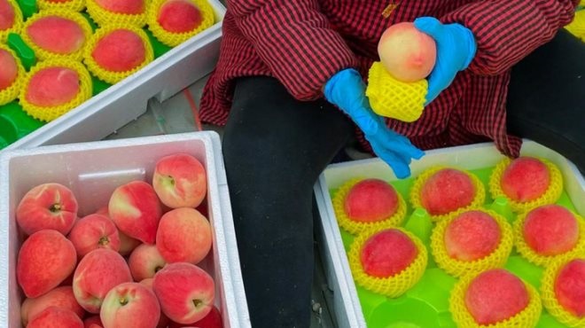 作為永輝的一名桃果采購,林雄城就是其中行家。3月初開始,林雄城奔忙在唐山樂亭的各個田間地頭,進(jìn)行桃果的挑選、訂購、物流安排等工作。他介紹說,項目組從春節(jié)后就著手籌備,為了保障品質(zhì),公司在源頭搭建了完整的供應(yīng)鏈體系,從采摘、揀選到包裝、運輸,每個環(huán)節(jié)都要把好關(guān)。