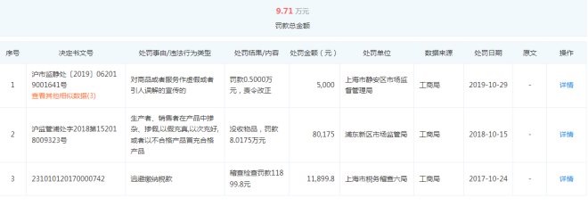 除北京分公司受到行政處罰外,巴麗(上海)商業(yè)有限公司也分別于2017年、2018年和2019年因虛假宣傳、以次充好和偷稅漏稅而被判處行政處罰。