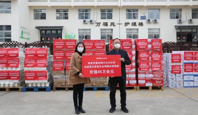 3月24日,家家悅集團聯(lián)手中順潔柔、伊利集團、金鑼集團、百事食品、農(nóng)夫山泉、康師傅控股·頂新公益基金會、深圳美越7家合作伙伴,向威海市慈善總會定向捐贈紙手帕、牛奶、肉制品和礦泉水等疫情防控所需的日常生活用品,價值45萬余元,又一次彰顯企業(yè)的社會責(zé)任。