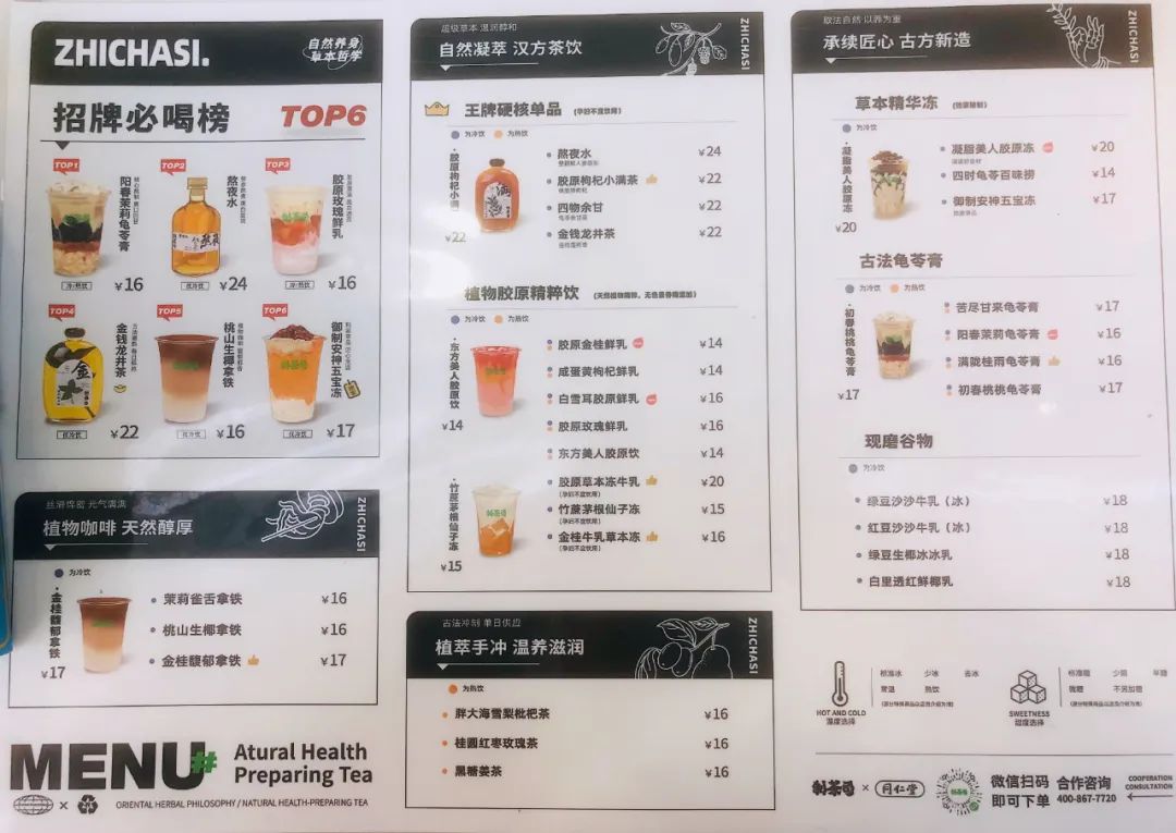 制茶司的價格遠低于喜茶、奈雪的茶,與腰部奶茶COCO、一點點、茶百道等較為相近。和同仁堂此前開的咖啡店知嘛健康里售價在28-38元左右的咖啡相比,價格也更親民。