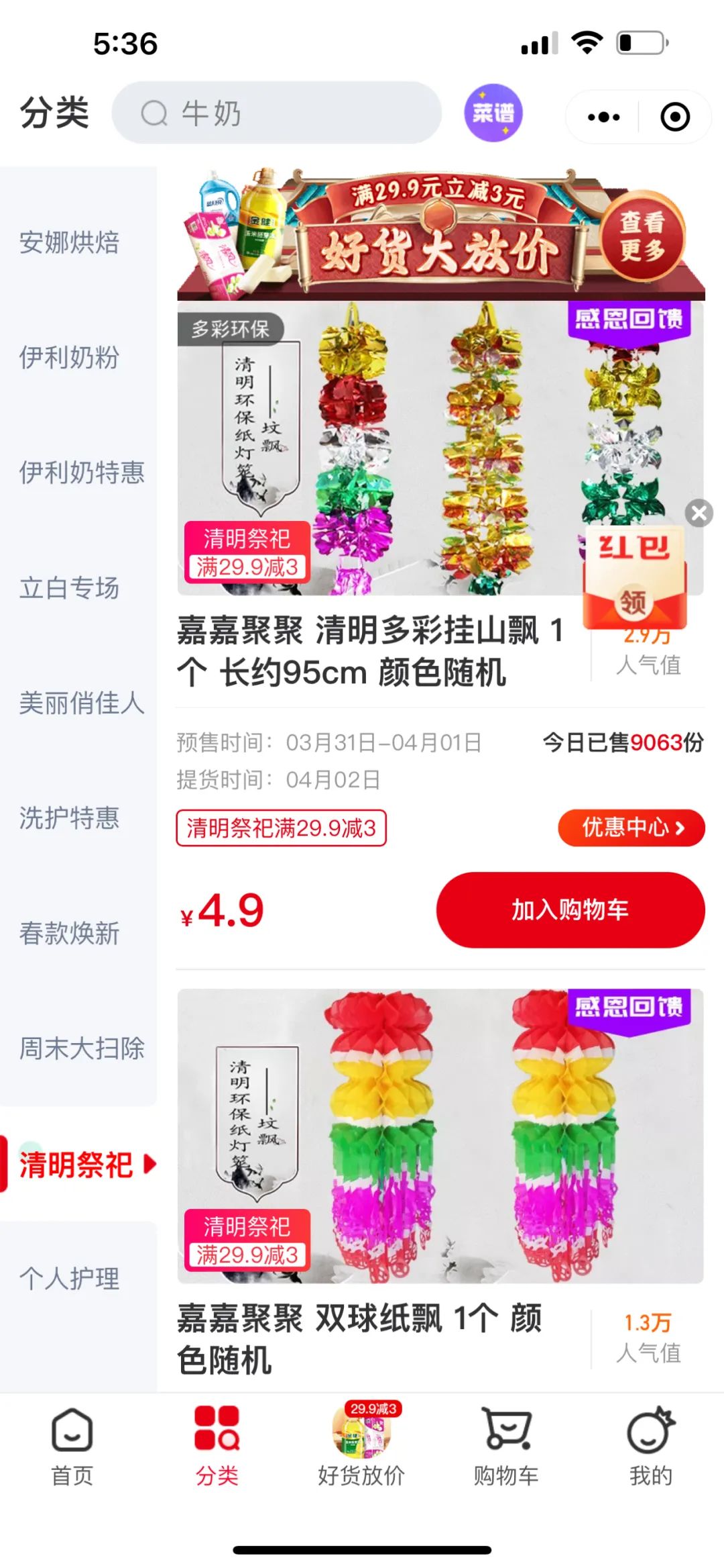 4月1日前后,興盛優(yōu)選還推出了清明節(jié)節(jié)令祭祀品。