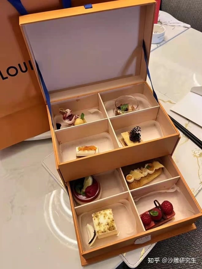 其實(shí)在當(dāng)下上海,不僅奢侈品在“送菜營銷”,諸如金融、高端車行、酒店等也不乏有“同行者”,但如若看網(wǎng)絡(luò)上大家曬的圖片則可發(fā)現(xiàn)——奢侈品牌送的“食物”無論包裝、品質(zhì)等都是極為考究、更勝一籌的。