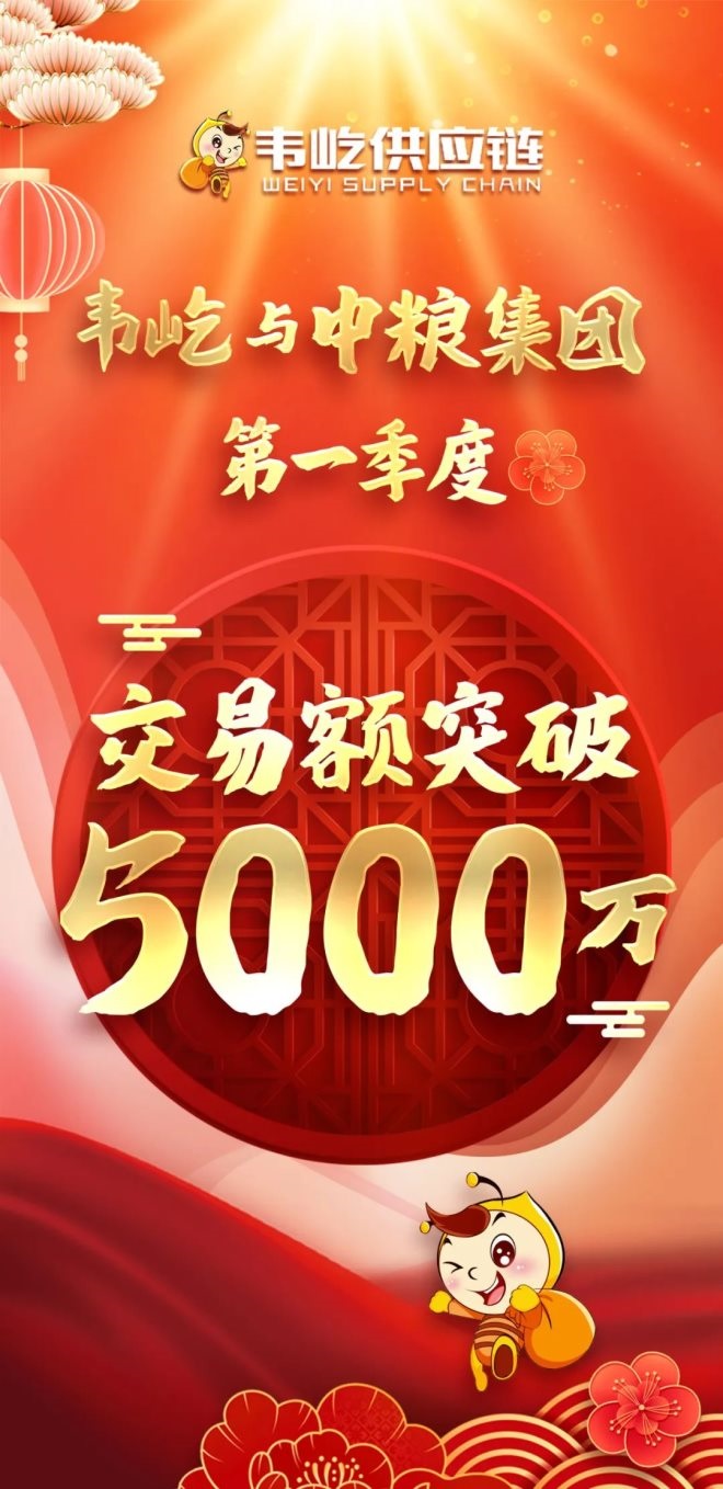 聯(lián)商快訊:2022年第一季度,韋屹供應(yīng)鏈管理有限公司銷售突破3.9億元。其中,與京東交易額突破1億元,與中糧集團(tuán)交易額突破5000萬元,均創(chuàng)新高。