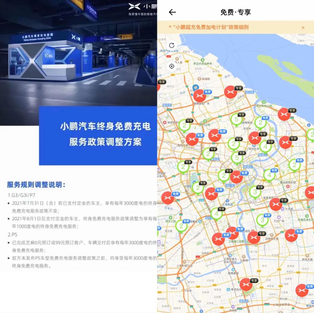 而小鵬的充電樁一般遍布在商場停車場,車主可以免兩小時停車費進行充電,并且每年自動更新。