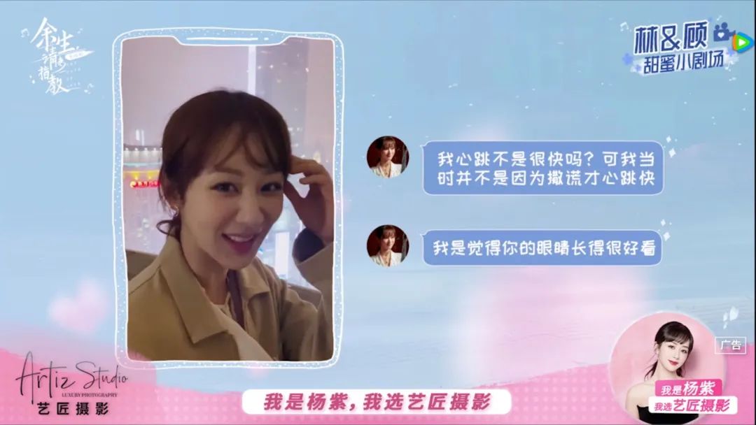 比如,片頭廣告出現(xiàn)過純甄饞酸奶、丁桂兒臍貼、榮耀Magic4、冰紅茶熱帶風(fēng)味等邀觀眾收看「前情回顧」,20多分鐘的片中則設(shè)有「余生傾心」板塊播放999三九胃泰、元?dú)馍值膹V告,片尾更創(chuàng)新了由楊紫代言的藝匠攝影去冠名「林&顧甜蜜小劇場(chǎng)」、「余生歡喜之幕后花絮」的營(yíng)銷手法,放送更多CP粉福利的衍生內(nèi)容。