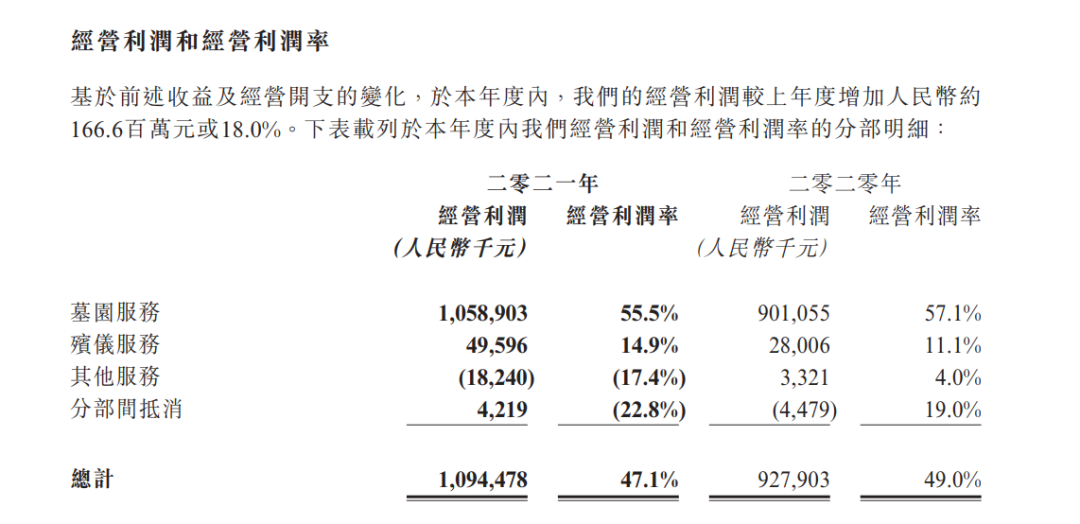 在“殯葬第一股”福壽園的2021年財報中,墓園服務(wù)收益占比83.4%,經(jīng)營利潤率達(dá)到了55.5%。福成股份旗下的殯葬業(yè)務(wù)利潤更加夸張,2020年年報中,墓位銷售、管理、殯葬服務(wù)毛利率為81.01%。