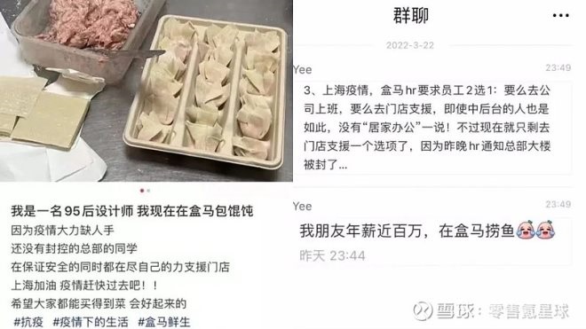 “我的健身教練‘入職’盒馬了”、“我是一名95后設(shè)計師,現(xiàn)在盒馬包餛飩”、“我朋友年薪百萬,在盒馬撈魚”……