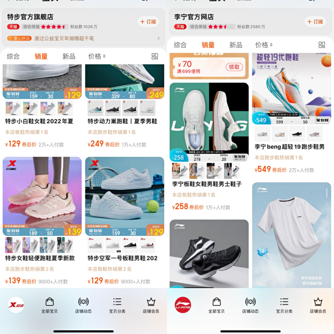 安踏和李寧淘寶旗艦店熱銷產(chǎn)品對比 去消費制圖