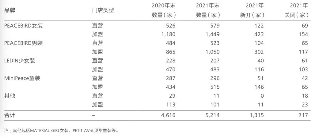 財(cái)報(bào)顯示,2021年太平鳥新開1315家門店,關(guān)閉717家門店;2020年,新開1049家,關(guān)閉929家。2019年,新開914家,關(guān)閉1012家。