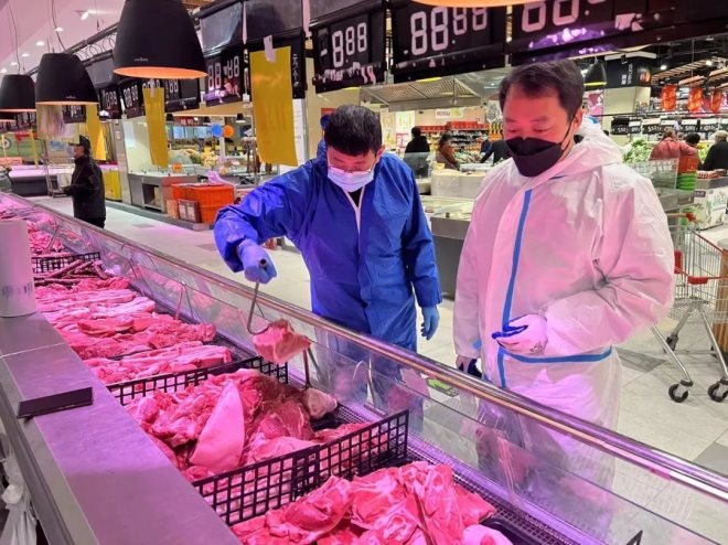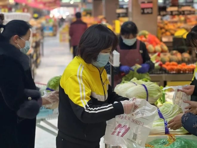 在超市我們看到,從顧客進(jìn)入賣場到購物全過程,疫情防控工作嚴(yán)密,超市內(nèi)的各種蔬菜、瓜果、肉類等產(chǎn)品種類豐富且十分新鮮,供應(yīng)上非常充足,價(jià)格并沒有因?yàn)橐咔橛写蠓日{(diào)整,前來采購的顧客秩序井然。