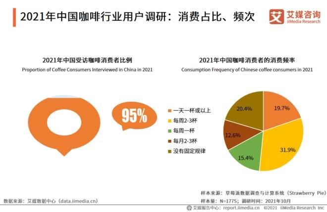 與此同時,中國咖啡消費者中超過七成年齡位于22-40歲,六成為女性用戶。每周消費咖啡的消費者占60.0%,每天消費咖啡的消費者占比達19.7%,艾媒咨詢分析師認為,中國已具備穩(wěn)定的消費群體,且多數(shù)消費者已經(jīng)形成每周消費咖啡的習(xí)慣,咖啡市場將進一步擴容。