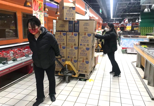 “大家這么多天駐留門店,非常辛苦!員工就餐一定要保證營養(yǎng),多補(bǔ)充蛋白質(zhì);晚上睡覺要用睡袋,溫度不夠可直接從門店調(diào)配棉被;卸貨送貨做好消毒……一定要保護(hù)我們員工的安全“。聽著熟悉的聲音,張佳定睛確認(rèn),在和店長說話的正是家樂福(中國)CEO田睿。