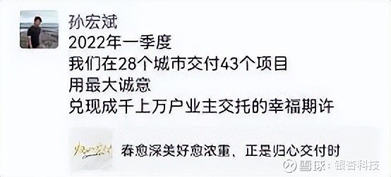 就在“債務(wù)展期”發(fā)酵的幾天前,孫宏斌還在自己的朋友圈轉(zhuǎn)發(fā)了融創(chuàng)官微的相關(guān)文章,并附上了一段話(huà):2022年一季度,我們?cè)?8個(gè)城市交付43個(gè)項(xiàng)目。