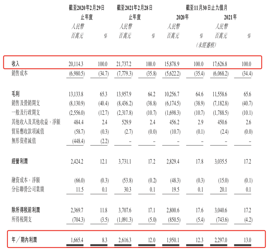 從結(jié)果來看,百麗2019財(cái)年、2020財(cái)年和2021財(cái)年前九個(gè)月的營業(yè)收入分別為201.14億元、217.37億元和176.27億元。凈利潤分別為16.65億元、26.16億元和22.97億元。目前百麗在女鞋品牌領(lǐng)域的市場占有率為11.2%,仍然是時(shí)尚鞋履市場第一。