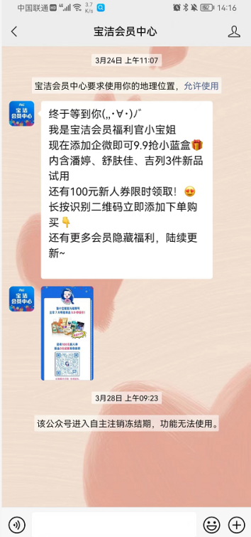 ▍截自“寶潔會(huì)員中心”微信公眾號(hào)(3月28日14時(shí)許截圖)