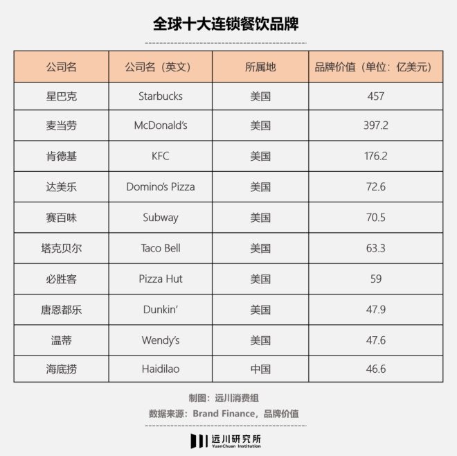 全球十大連鎖餐飲品牌里,美國拿走九席,剩下一個海底撈從人口數(shù)量占優(yōu)的中國走出,但“全球連鎖”這個稱呼略微站不住腳,畢竟超過90%的門店都來自本土。