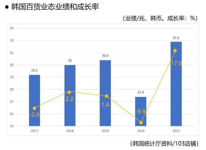這種綜合文化空間概念的戰(zhàn)略是受新冠疫情影響下禁止海外旅行狀態(tài)中衍生出來的,其具備反射作用和消費能力的MZ世代的flex文化(即使產(chǎn)品價格昂貴,但為了自身滿足感從而產(chǎn)生消費)所帶來的奢華消費(包括但不限于奢侈品、家庭用品和新鮮食品等全行業(yè)高檔商品),該消費行為帶動了百貨店的成長,擺脫了2021年持續(xù)發(fā)生新型冠狀病毒所產(chǎn)生的營銷,使其銷售額仍增長了17%,并持續(xù)拓展4家大型新店,打破了近幾年來消費能力低增長的趨勢。