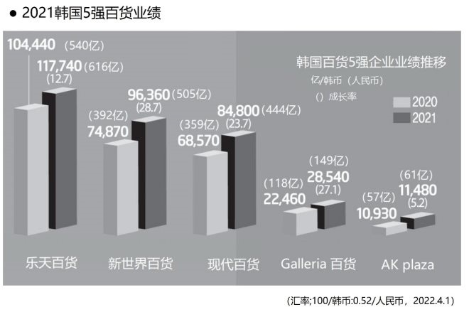 根據(jù)2022年韓國三大百貨企業(yè)公布的門店整改計劃中可知:樂天百貨和新世界百貨將分別投資5,476億韓元(約計28.3億人民幣)和4,766億韓元(約計24.7億人民幣),現(xiàn)代百貨投資2千億韓元(約計10.4億人民幣)用于現(xiàn)有店鋪的改造升級。