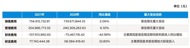 財(cái)報(bào)顯示,公司2021年度的期間費(fèi)用率達(dá)27.88%,經(jīng)營(yíng)活動(dòng)現(xiàn)金凈流量?jī)H為5.45億元,相比上一年度減少逾3600萬(wàn)元。其期內(nèi)銷(xiāo)售費(fèi)用為7.55億元,同比增加2.06%,管理費(fèi)用為2.55億元,同比增加6.1%。