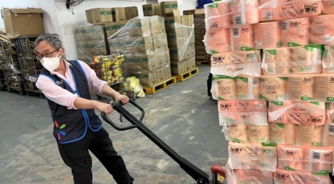 三月底,沃爾瑪?shù)?0萬份食品包和3.5萬蔬菜包物資開始分批、陸續(xù)抵送上海。到了卸貨的環(huán)節(jié)也需要人,門店的四位員工,有一天鉆進(jìn)十幾米長的貨柜,一箱箱的把當(dāng)天到貨的物資搬出來,凌晨2點07分,他們在微信里回復(fù)三個字:搞完了。