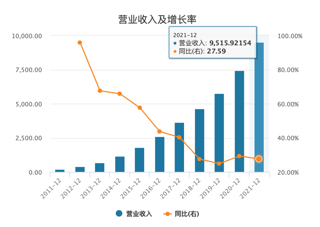 而后的三年,京東重新實現(xiàn)高速增長。截至2021年末,京東年度活躍用戶數(shù)超過5億,全年凈收入9516億元,全年GMV達3.29萬億。