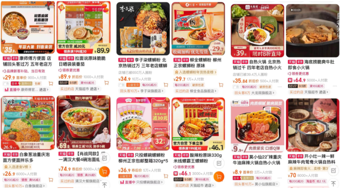 電商平臺上的各類方便速食產(chǎn)品