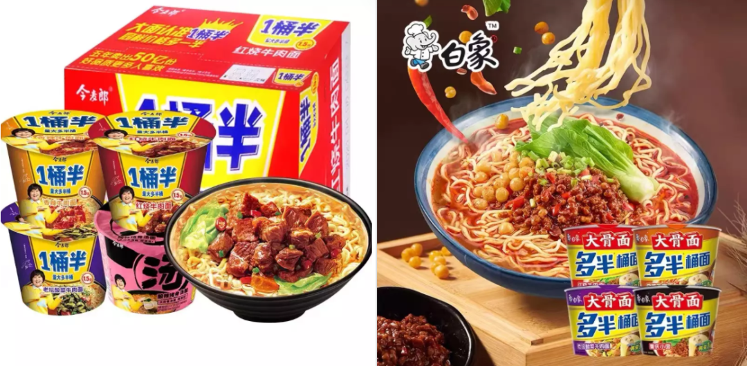 今麥郎“1桶半”vs白象“多半桶”
