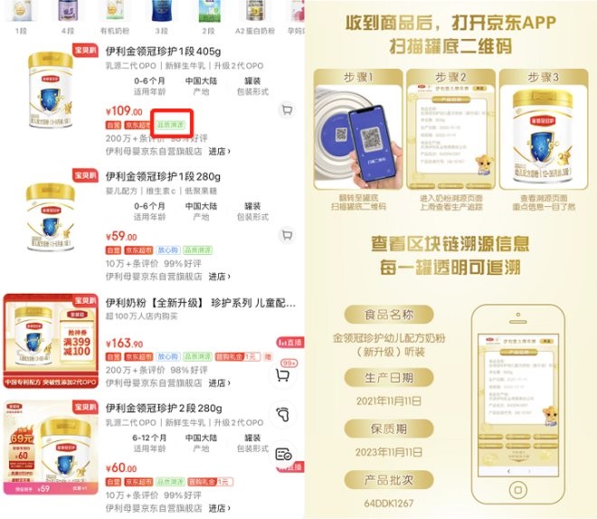消費者購買帶有“品質(zhì)溯源”標(biāo)識的奶粉后,可通過京東APP掃描奶粉包裝二維碼或點擊“品質(zhì)溯源”了解源頭信息,讓寶寶吃得更放心。