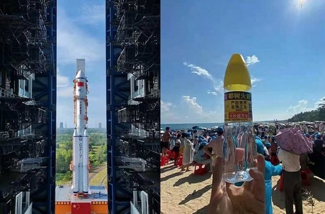2021年9月,長(zhǎng)征七號(hào)遙四運(yùn)載火箭在中國(guó)文昌航天發(fā)射場(chǎng)點(diǎn)火升空成功,椰樹(shù)集團(tuán)推出火箭瓶國(guó)寶椰樹(shù)長(zhǎng)壽泉礦泉水。