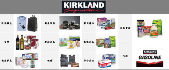 Costco公司擁有自有品牌Kirkland,成立之初是由于名牌商品的價(jià)格上漲,為開(kāi)發(fā)自有品牌提供了契機(jī),至今為止Kirkland已涵蓋14大類商品,如服裝及行李箱,雜物,家庭用品等。