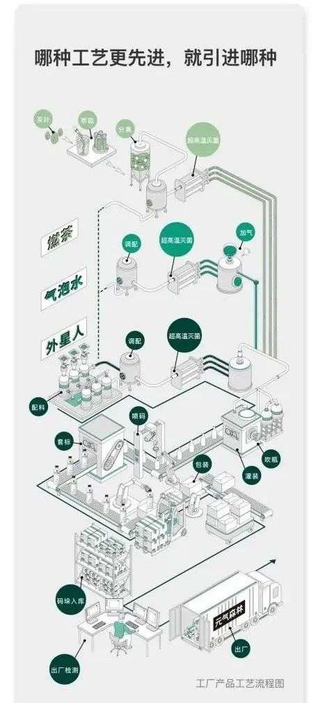 圖注:元氣森林工廠產(chǎn)品工藝流程圖(略)