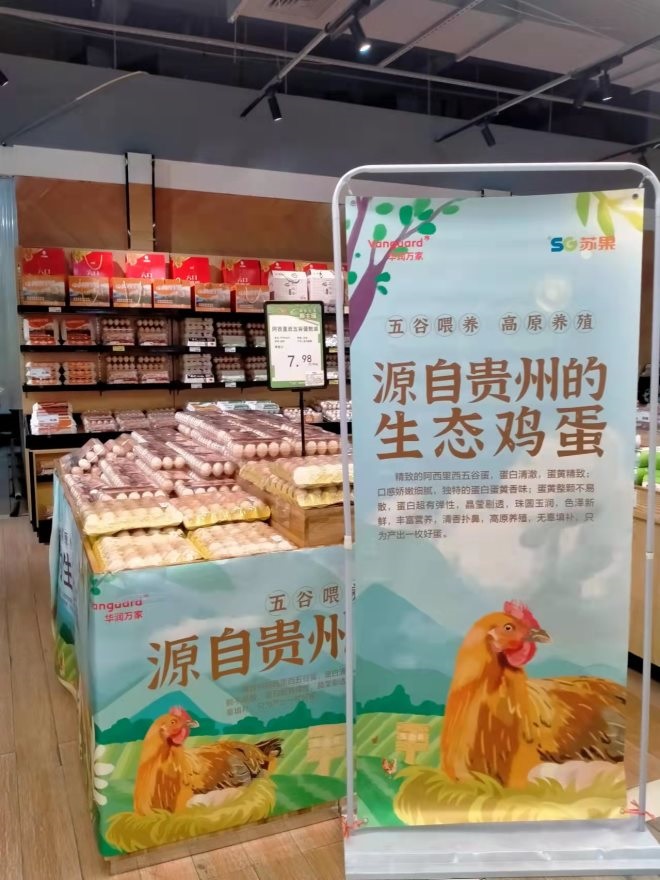 在華潤(rùn)蘇果奧體廬山路店的生鮮區(qū),貴州省赫章縣阿西里西五谷鮮雞蛋成為不少消費(fèi)者購(gòu)物車?yán)锏南沭G餑!斑@種來(lái)自高原的雞蛋口感很好,家里人都很喜歡。我每周都要來(lái)買(mǎi)一次!碑(dāng)?shù)弥@種雞蛋是來(lái)自西部脫貧地區(qū)時(shí),市民姚阿姨往購(gòu)物車?yán)镉旨恿巳邪⑽骼镂麟u蛋。蘇果奧體廬山路店相關(guān)負(fù)責(zé)人告訴記者,“蘇果為了做好赫章雞蛋的銷售,門(mén)店在生鮮區(qū)主通道設(shè)立專柜進(jìn)行銷售,取得了顯著效果,贏得了不少回頭客!