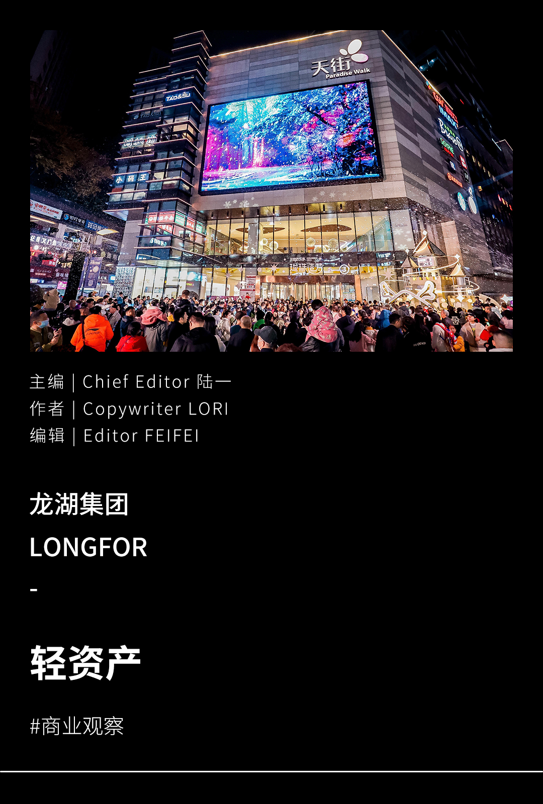 按照目前釋放出來(lái)的輕資產(chǎn)布局策略,我可以初步判定:即便不占先機(jī),龍湖商業(yè)在這一賽道上也完全具備「后來(lái)居上」的架勢(shì)與實(shí)力。