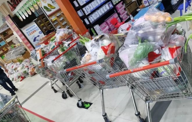 無論是超市員工、配送人員、支援人員還是公司領(lǐng)導(dǎo)們,他們都是從早上五點(diǎn)忙碌到凌晨兩三點(diǎn),他們身上似乎有使不完的勁兒,面對眾多的訂單,他們絲毫不敢懈!在賣場、辦公室、在車上,只要是他們工作的陣地,他們都能找到簡單的鋪蓋,來作為他們臨時(shí)休憩的場地,疫情封控持續(xù)了多久,他們就這樣短暫的休息了多少次。