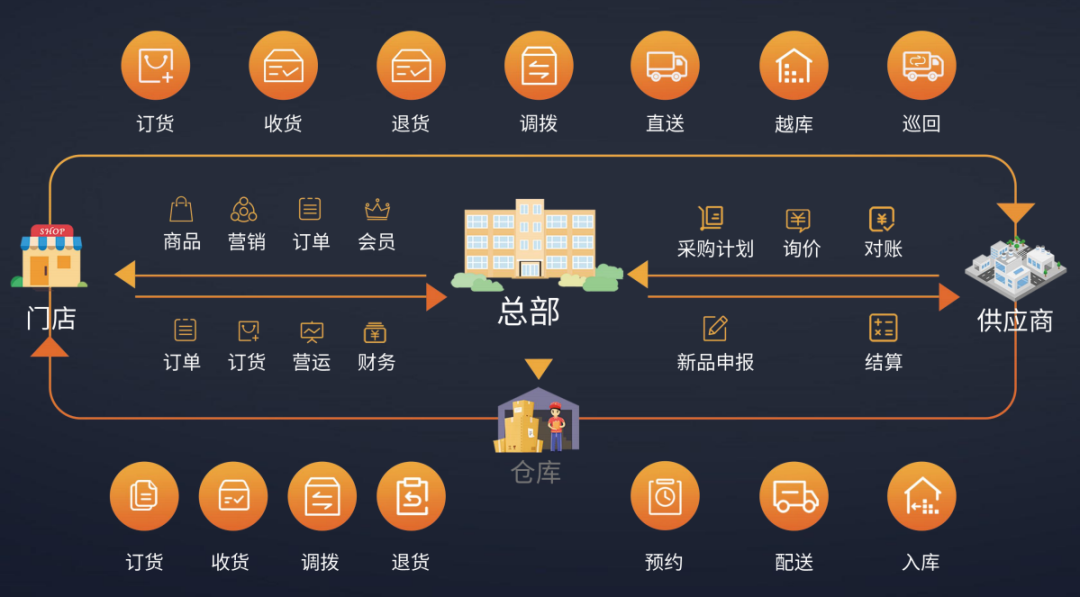 首先,采用多鏈路,一體化方案,將客戶、倉(cāng)儲(chǔ)、供應(yīng)商所有業(yè)務(wù)在線化,相互協(xié)同,提高協(xié)同效率。