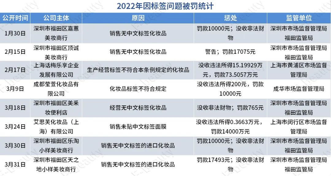 2022年因標(biāo)簽問題被罰統(tǒng)計(jì)