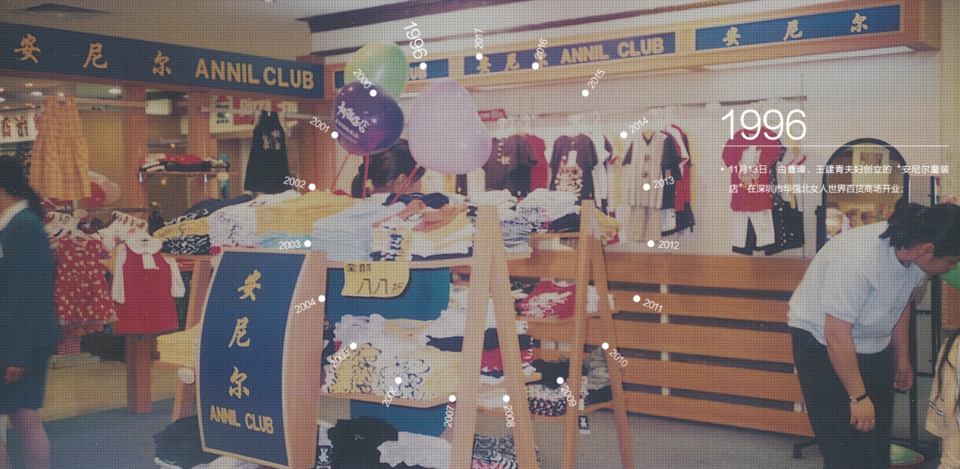 1996年,創(chuàng)始人曹璋、王建青夫婦創(chuàng)辦了安奈兒的前身——安尼爾童裝店。